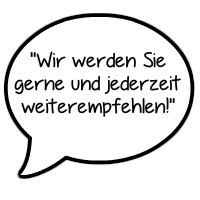 Wir werden Sie gerne und jederzeit weiterempfehlen!"